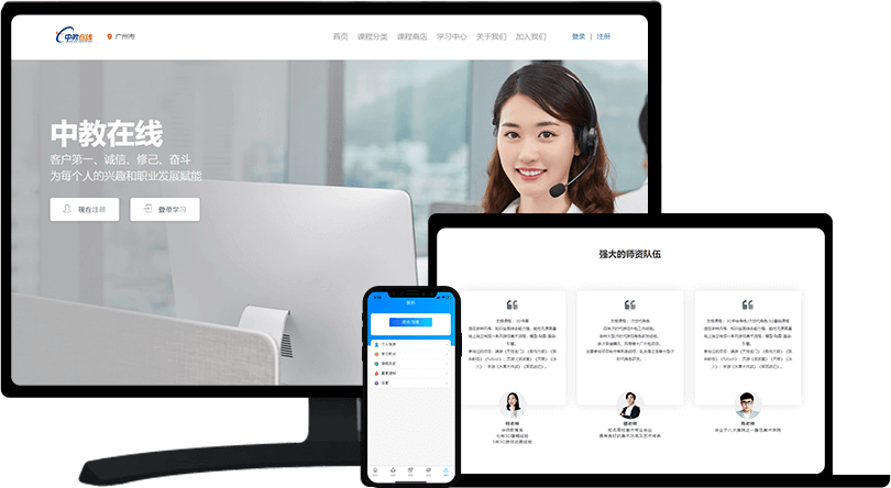 我们拥有在线直播教学,课程录像授课,在线答题考试题库, 学习报告分析等服务,学员可以通过电脑,手机进行在线学习。